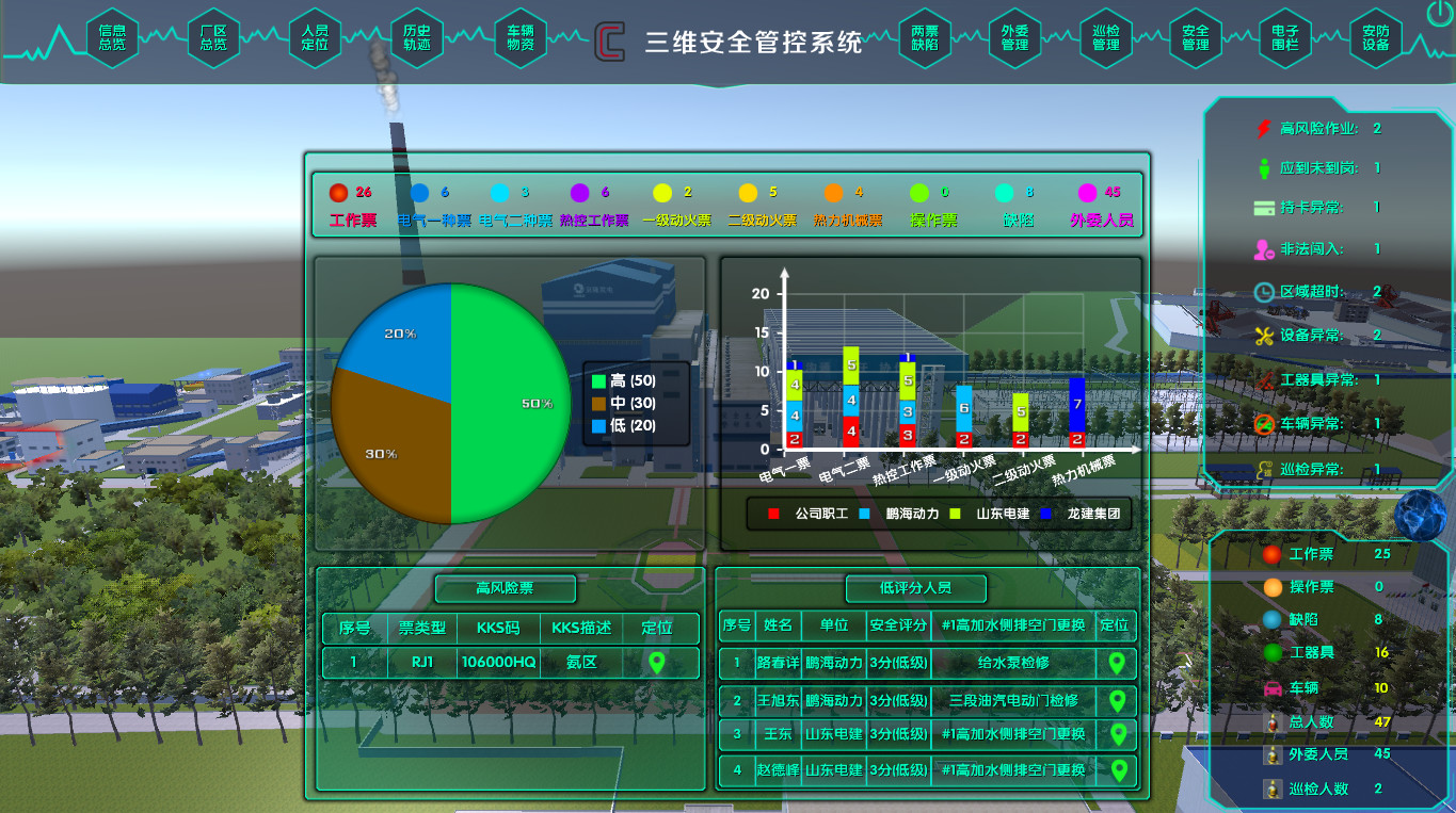 人員安全主要體現(xiàn)在兩點(diǎn):空間內(nèi)行為安全以及作業(yè)過(guò)程安全。空間內(nèi)行為安全的解決辦法應(yīng)用到的就是目前比較熱門的技術(shù):UWB室內(nèi)定位技術(shù)。人員定位技術(shù)之所以能夠在安全管理上起到關(guān)鍵作用,主要在于實(shí)時(shí)的定位能夠精確定位人員在空間內(nèi)的位置,而UWB技術(shù)的精度可以達(dá)到10cm。以云酷科技的三維可視化人員定位管理系統(tǒng)為例,其主要能夠?qū)崿F(xiàn)的功能:員工攜帶信息唯一的定位標(biāo)簽,通過(guò)電子標(biāo)簽和定位設(shè)備之間不斷測(cè)距,實(shí)時(shí)定位并顯示在二維/三維地圖上,當(dāng)人員遇到突發(fā)情況時(shí),可以通過(guò)電子標(biāo)簽進(jìn)行報(bào)警。同時(shí)根據(jù)標(biāo)簽的唯一性,在系統(tǒng)中輸入人員信息就可以查詢當(dāng)前位置,還可以查詢到人員一定時(shí)間內(nèi)的歷史活動(dòng)軌跡。在此基礎(chǔ)之上系統(tǒng)會(huì)自動(dòng)統(tǒng)計(jì)各外包隊(duì)伍出勤率,及人員出勤天數(shù)供管理人員查看。系統(tǒng)把整個(gè)廠區(qū)劃分為N個(gè)作業(yè)區(qū)域,根據(jù)作業(yè)區(qū)域安全風(fēng)險(xiǎn)的高低做出相應(yīng)的等級(jí)劃分,便于重點(diǎn)區(qū)域重點(diǎn)監(jiān)控。根據(jù)各人員的工作崗位和工作內(nèi)容進(jìn)行區(qū)域授權(quán),對(duì)人員闖入未授權(quán)區(qū)域系統(tǒng)立即報(bào)警。同時(shí)系統(tǒng)會(huì)接入ERP中的兩票、缺陷信息,根據(jù)兩票、缺陷信息中的區(qū)域位置及設(shè)備的KKS編碼,把兩票、缺陷作業(yè)劃分到相應(yīng)的區(qū)域中,實(shí)現(xiàn)兩票、缺陷及作業(yè)人員分區(qū)域列表展現(xiàn)和三維展現(xiàn),方便查看與管理。定位系統(tǒng)自動(dòng)記錄巡點(diǎn)檢人員的巡點(diǎn)檢時(shí)長(zhǎng)、巡點(diǎn)檢次數(shù)并與預(yù)設(shè)的巡點(diǎn)檢路線進(jìn)行比對(duì),自動(dòng)統(tǒng)計(jì)分析巡點(diǎn)檢人員的到位率與偏差等。對(duì)于巡點(diǎn)檢人員偏離巡點(diǎn)檢路線及漏檢等及時(shí)短信與APP推送報(bào)警信息。4、高風(fēng)險(xiǎn)作業(yè)管理密閉空間作業(yè)屬于高風(fēng)險(xiǎn)作業(yè),安全風(fēng)險(xiǎn)較高。針對(duì)密閉空間作業(yè)的環(huán)境特點(diǎn),采用電池供電的移動(dòng)式定位設(shè)備臨時(shí)固定在密閉空間內(nèi),天線放置在密閉空間外,確保定位無(wú)線信號(hào)傳輸?shù)目煽啃浴?/span>人員攜帶定位標(biāo)簽進(jìn)入密閉空間系統(tǒng)可實(shí)時(shí)監(jiān)督密閉空間內(nèi)人員數(shù)量。同時(shí)可加設(shè)便攜式無(wú)線攝像頭,以便實(shí)時(shí)監(jiān)控作業(yè)人員。高空作業(yè)、大型設(shè)備吊裝及腳手架搭設(shè)過(guò)程中容易出現(xiàn)安全事故,如未掛安全帶墜落,交叉作業(yè)、高空落物等風(fēng)險(xiǎn),這類亦屬于高風(fēng)險(xiǎn)作業(yè)。在作業(yè)前假設(shè)臨時(shí)虛擬電子圍欄,防止無(wú)關(guān)人員進(jìn)入工作區(qū),同時(shí)利用圖形識(shí)別技術(shù)檢測(cè)是否正確佩戴安全帽和安全帶,發(fā)現(xiàn)異常立即報(bào)警。5、多系統(tǒng)聯(lián)動(dòng)系統(tǒng)支持接入電廠視頻監(jiān)控系統(tǒng),在三維電子地圖上顯示視頻監(jiān)控位置,任意切換調(diào)取視頻監(jiān)控。可實(shí)現(xiàn)快速查找、單點(diǎn)回放、圖像識(shí)別等功能。同時(shí)可基于人員當(dāng)前位置自動(dòng)調(diào)取對(duì)應(yīng)的視頻監(jiān)控,對(duì)人員行走到其他位置自動(dòng)切換到相應(yīng)監(jiān)控畫面。對(duì)于發(fā)生異常的情況,可基于人員歷史軌跡不同位置及不同時(shí)段調(diào)取相應(yīng)位置相應(yīng)時(shí)間段的歷史視頻監(jiān)控,與歷史軌跡聯(lián)動(dòng)播放,方便事故分析及責(zé)任劃定。另外系統(tǒng)接入現(xiàn)有門禁系統(tǒng),通過(guò)動(dòng)態(tài)授權(quán)實(shí)現(xiàn)門禁的智能聯(lián)防。智能門禁聯(lián)防實(shí)時(shí)顯示各個(gè)門禁的開關(guān)及工作狀態(tài),還可以查詢門禁刷卡記錄,并根據(jù)進(jìn)入記錄統(tǒng)計(jì)各區(qū)域內(nèi)人員數(shù)量及名單。通過(guò)多功能、多角度的定位管理,人員定位管理系統(tǒng)可以大幅度提高電廠人員安全,為智慧電廠的安全建設(shè)提供真正的智慧安全。當(dāng)然除了空間內(nèi)安全的人員定位,智慧電廠的安全建設(shè)還需要員工作業(yè)安全的體系完善。